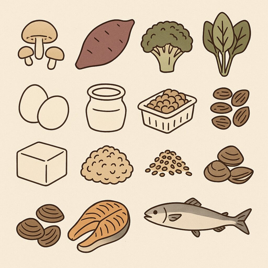 栄養面では、夏に不足しがちだったたんぱく質とビタミンB群、鉄、亜鉛を意識して補いましょう。